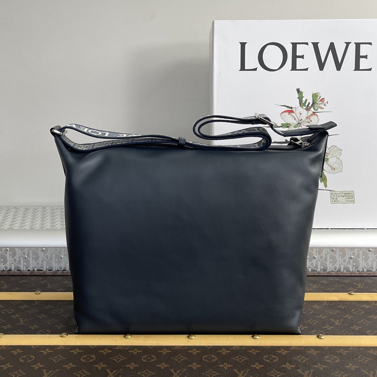 Loewe Soft and Smooth Cow Leather and Jacquard Cloth Cubi Crossbody Bag Size: 44 * 18 * 30cm