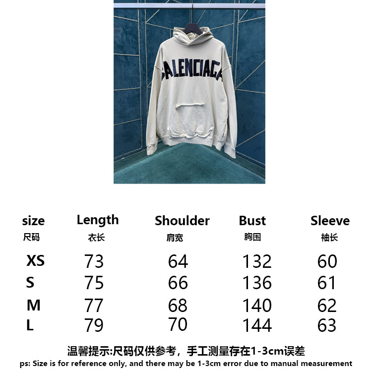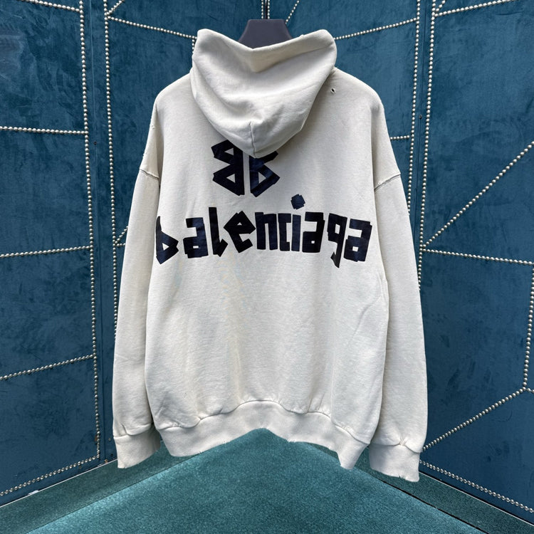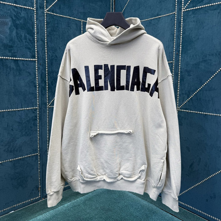 Balenciaga 25ss new TAPE TYPE RIPPED POCKET HOODIE hooded sweatshirt