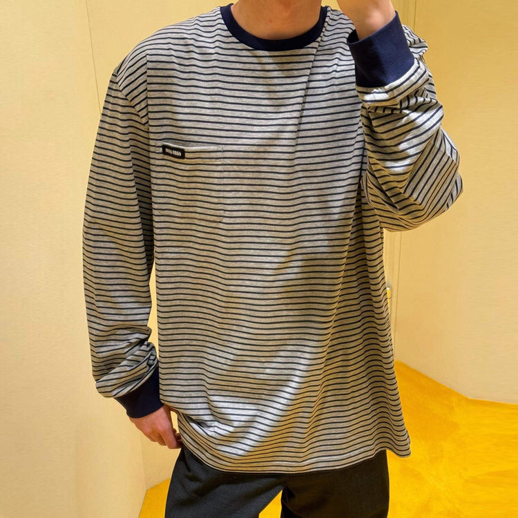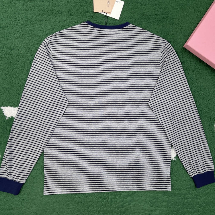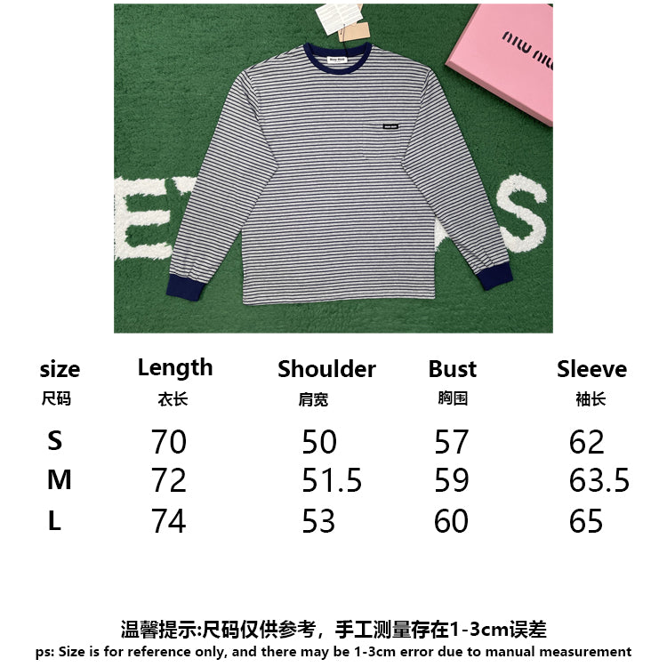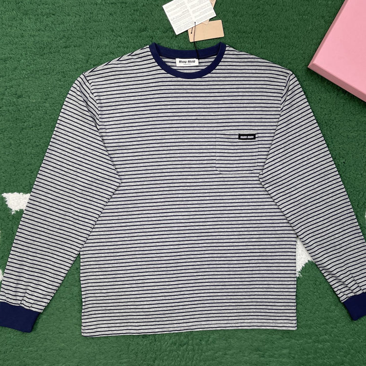 Miumiu Atheneum pop-up series solid color striped round neck long sleeved T-shirt