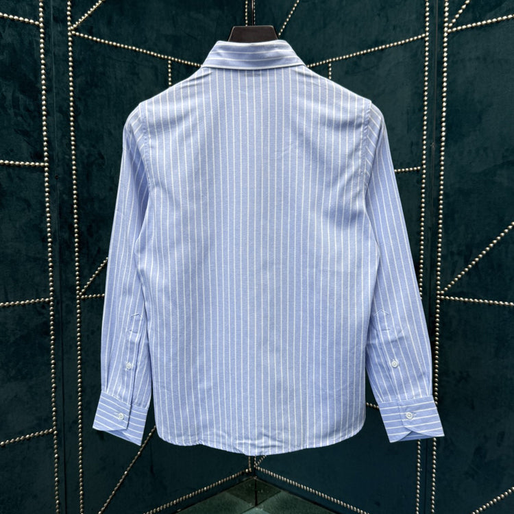 Polo 25ss New Vertical Stripe Logo Notch Lapel Long Sleeve Shirt