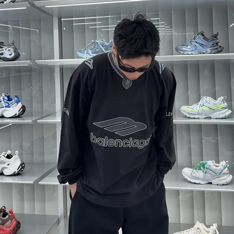 Balenciaga 3B FOOTBALL Long sleeved V-neck T-shirt
