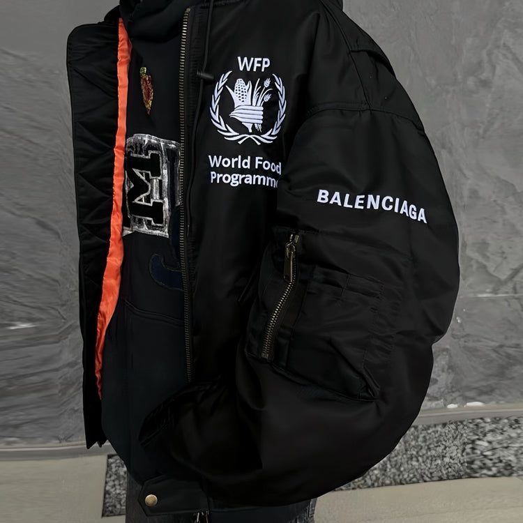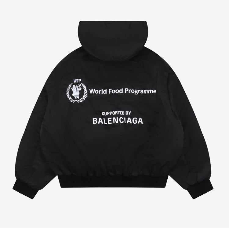 Balenciaga front and back patchwork hooded cotton jacket