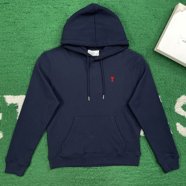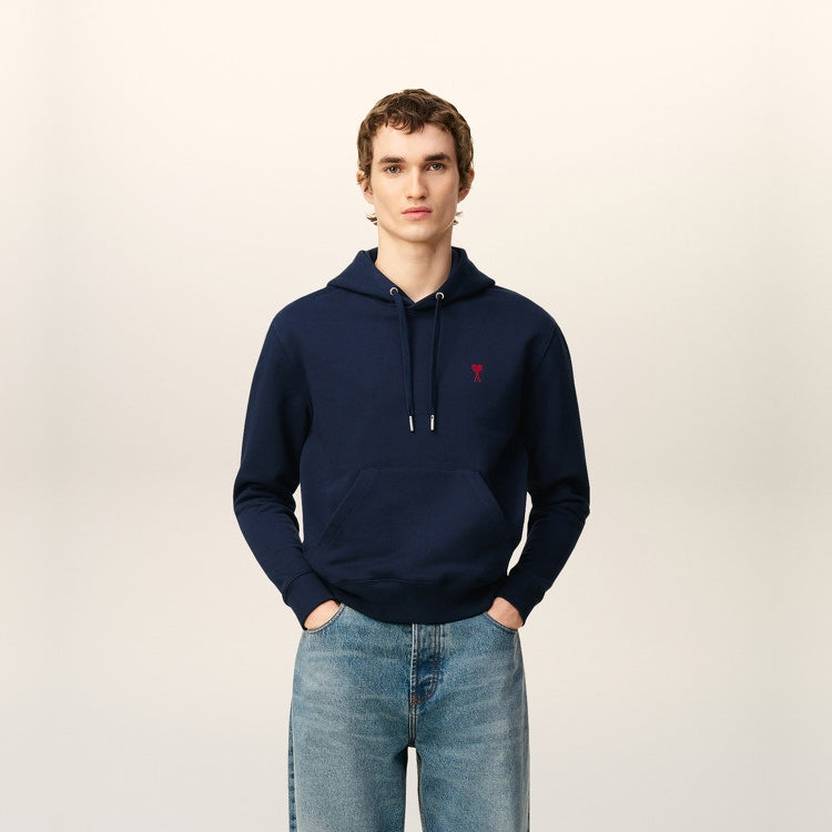 AMI Unisex Red ADC Cotton Loop Hoodie Heart-Fitted Pullover