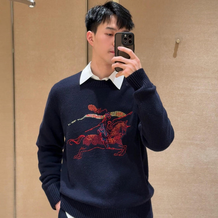 Burberry Cross Embroidered Equestrian Knight Logo Wool Blended Knitted Sweater