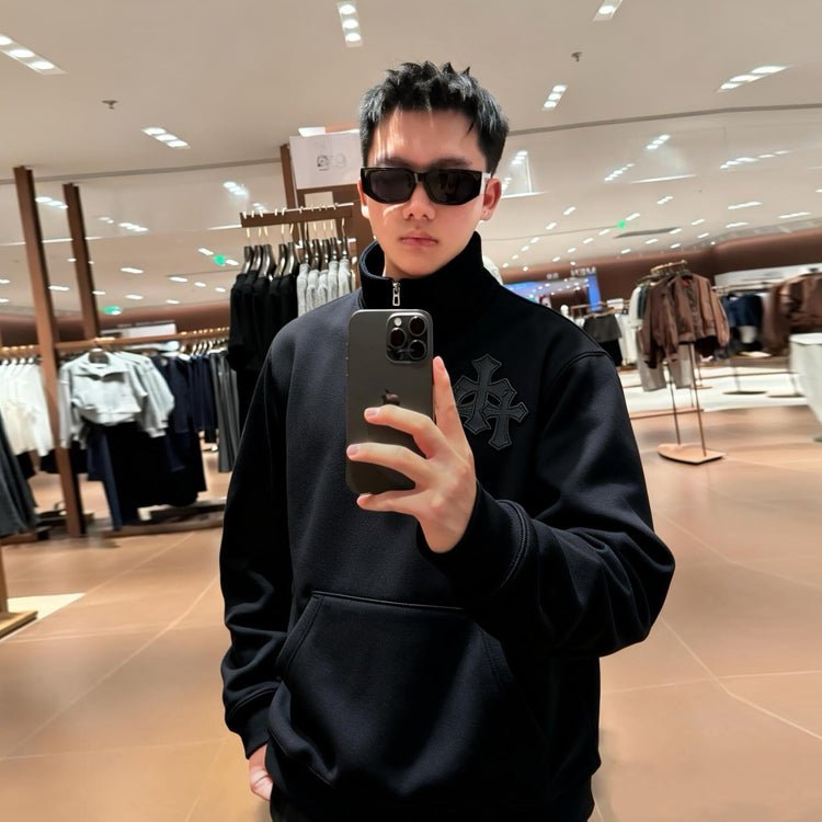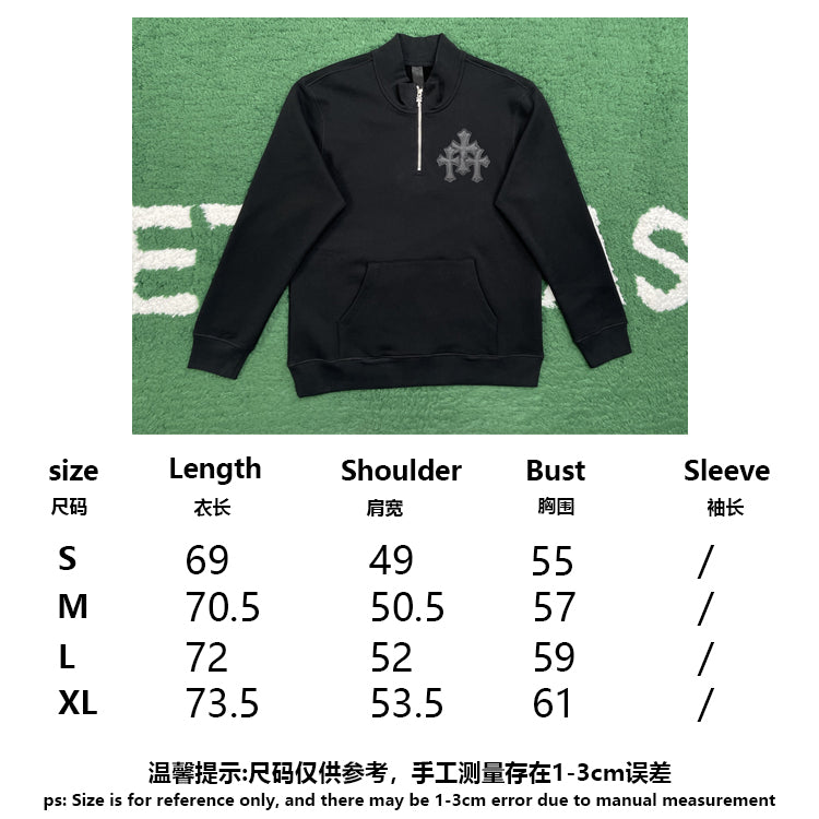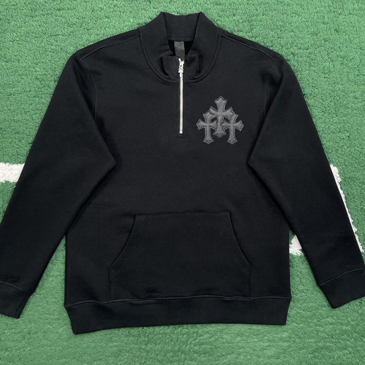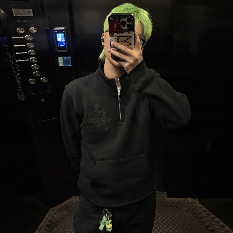 Chrome Hearts Leather Cross Half Zipper Long Sleeve Hoodie