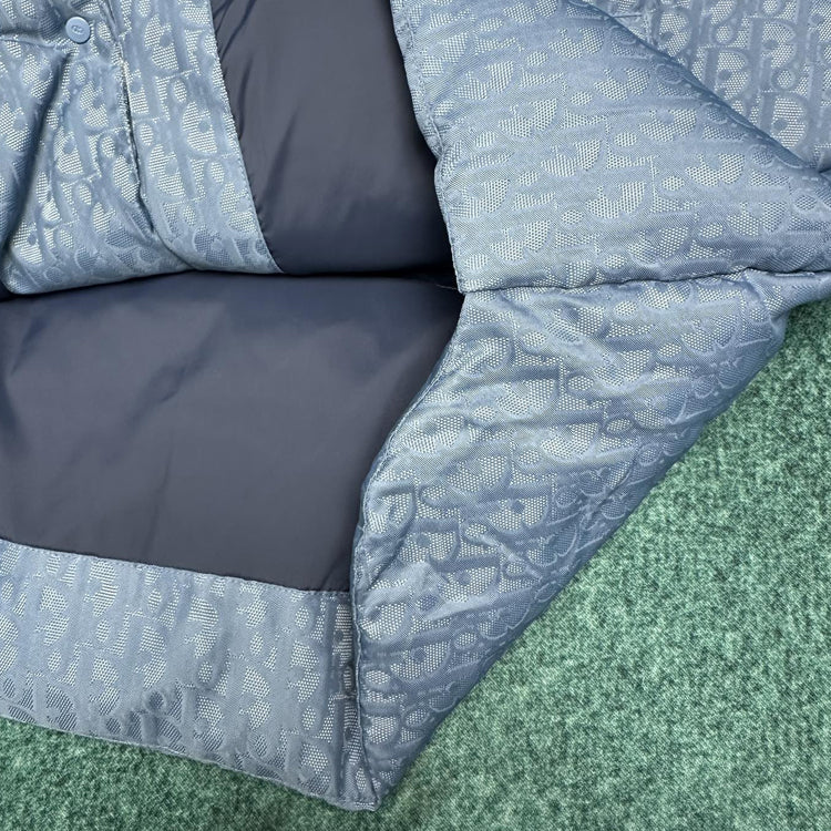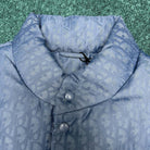 This down vest features Dior's iconic Oblique print, crafted from blue cotton-blend fabric. The back is adorned with a Dior rubber patch, complemented by a stand-up collar and flapped pockets for a distinctive design. Sleeveless in silhouette, it can be paired with tailored outfits or sportswear.