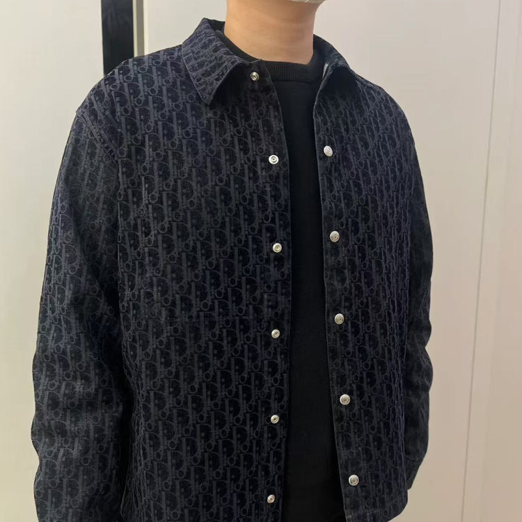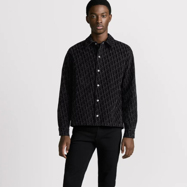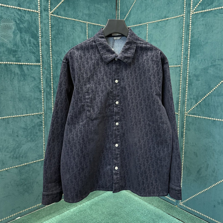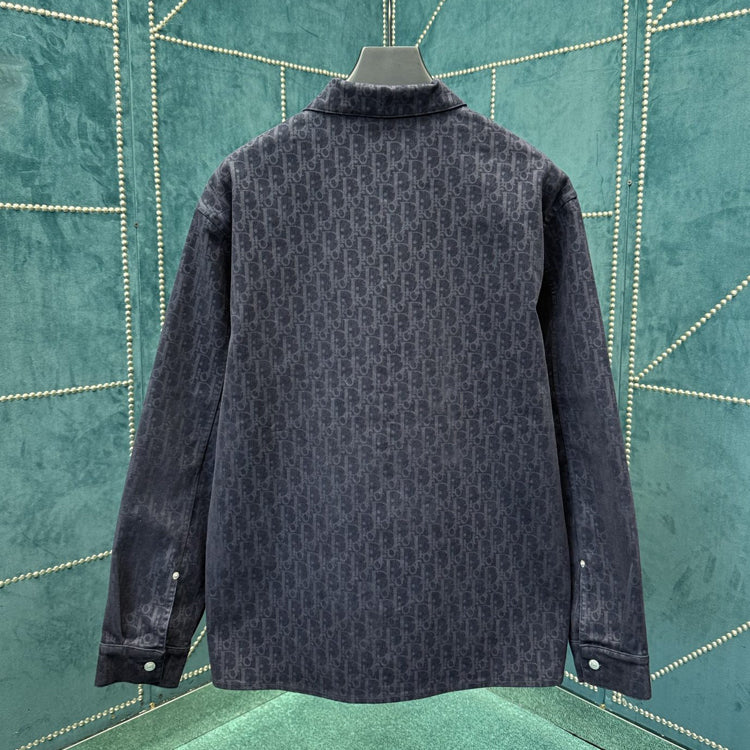 Dior 25ss new jacket shirt blue cotton blend twill fabric Oblique print