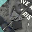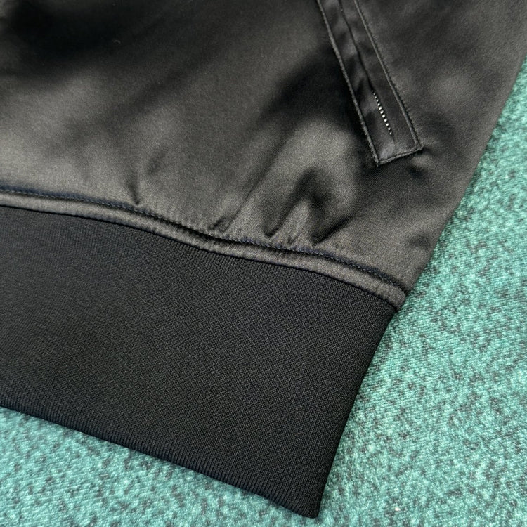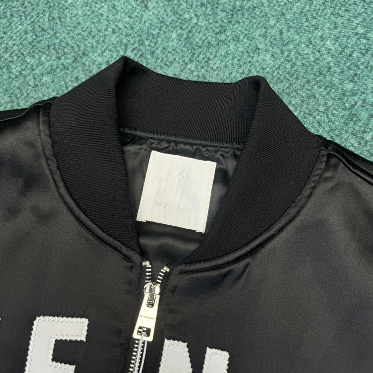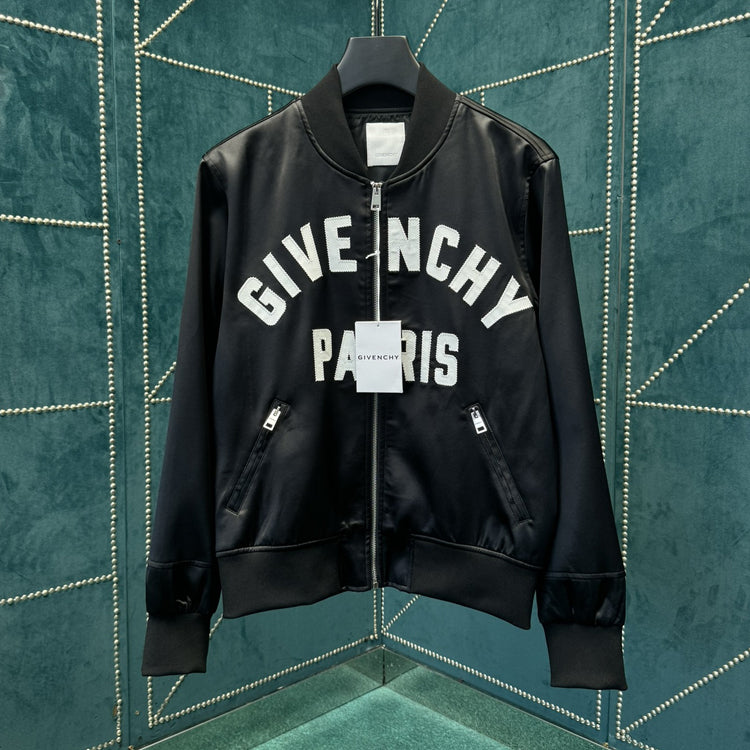 Front satin GIVENCHY Paris logo, paired with zigzag stitching, zipper closure, and 2 zippered pockets. Featuring ribbed collar, hem, and cuffs for a casual cut