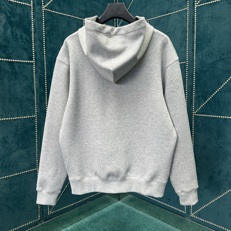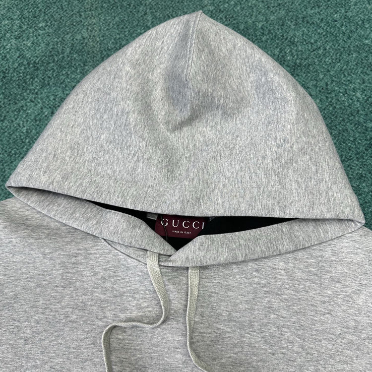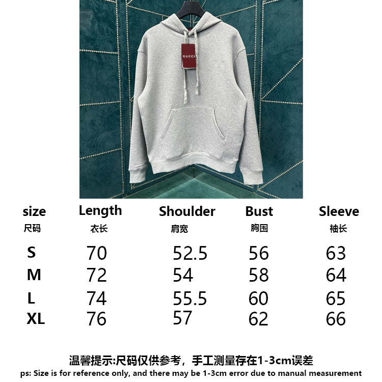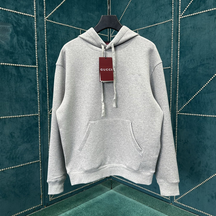 The hoodie series perfectly blends soft texture and exquisite details, creating exquisite and elegant winter wardrobe items. This hoodie is made of linen gray double-layer viscose fiber knitted fabric, adorned with low-key and understated Gucci embroidery.