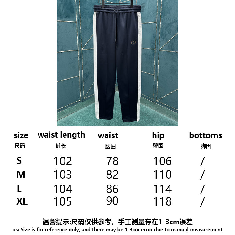 The brand elements are cleverly integrated into the silhouette, fabric, and craftsmanship, continuing the brand's heritage and interpreting contemporary aesthetics. This plain knit sports pants are adorned with interlocking double G embroidery, showcasing exquisite charm.