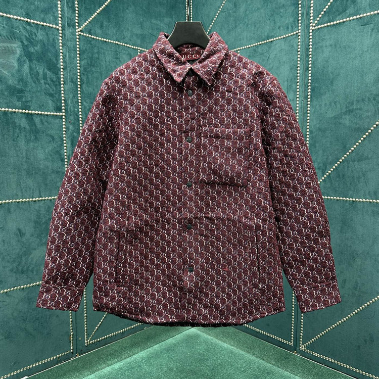 Engraved button, snap open placket, loose shirt silhouette, sharp neckline design, black silk lining, unisex
