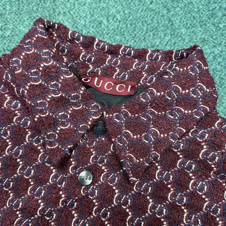 Gucci New Notched Checkered Long-Sleeved Cotton Coat