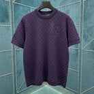 This short sleeved cotton round neck shirt is made of Damier knit fabric with deep texture this season. The chest is adorned with embroidered LV letters in the same color scheme, and the back is sewn with leather Marque L. Vuitton D é pos é e patches. This low-key design brings understated and exquisite embellishments to daily styling.