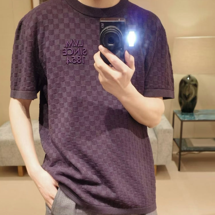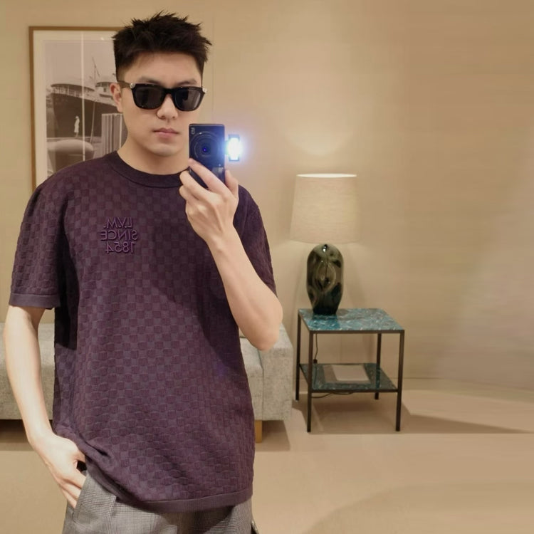 LV 25ss new DAMIER jacquard short sleeved round neck shirt