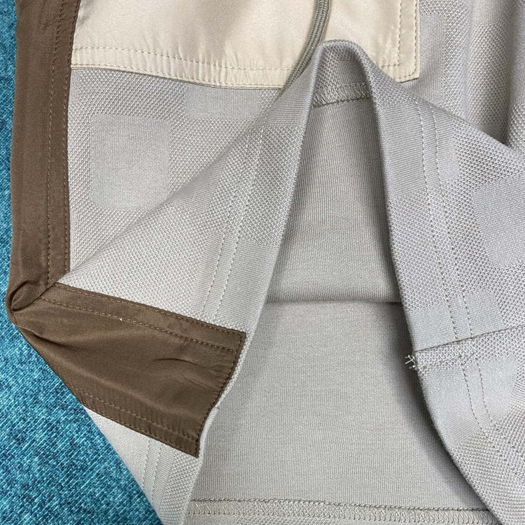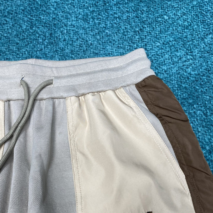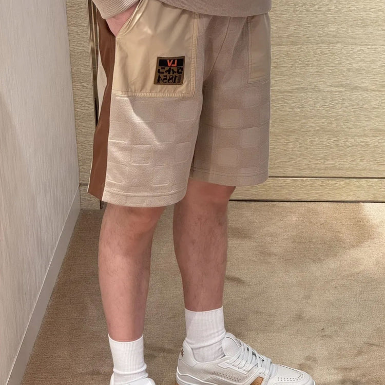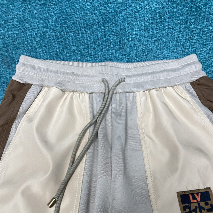 Using Damier blended pearl cotton and embedding color blocks on both sides and patch pockets, cleverly releasing a dynamic atmosphere. The ribbed waist drawstring is equipped with a metal end, and the left pocket is embroidered with the LV Japan label, highlighting the collaboration with Japanese designer Nigo for the current season.