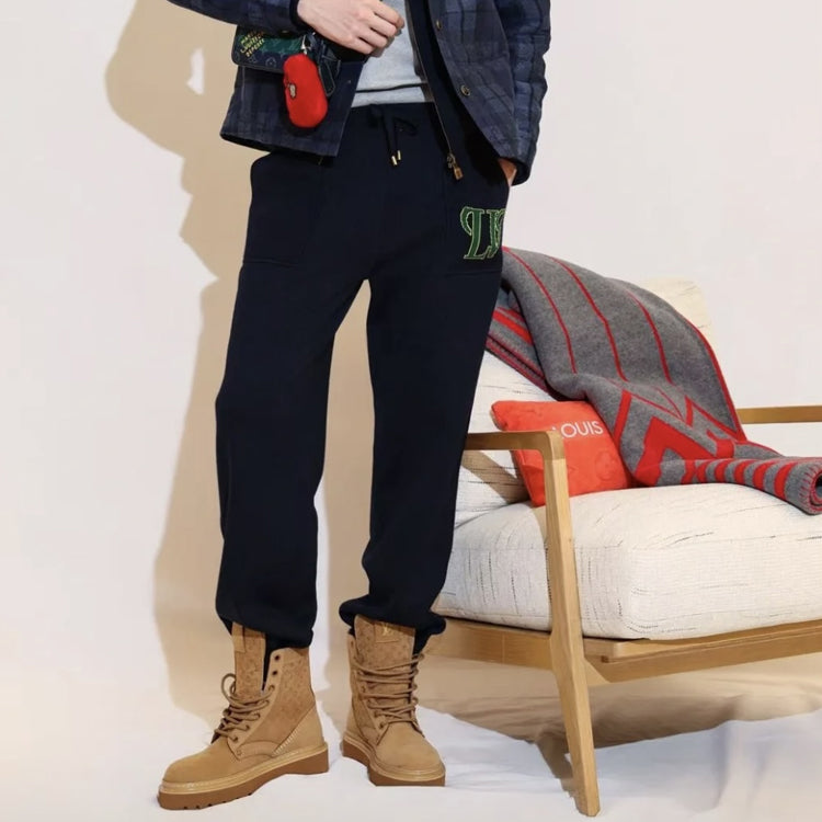 This jogging pants are made of cotton wool blended double-sided knitting with exquisite design, combining elegant style and comfortable experience. The contrasting LV floral logo and the new season Monogram Heritage pattern are embellished on the left pocket and back patch pocket. The ribbed drawstring waist and hem create a comfortable choice, which pairs well with the same hoodie
