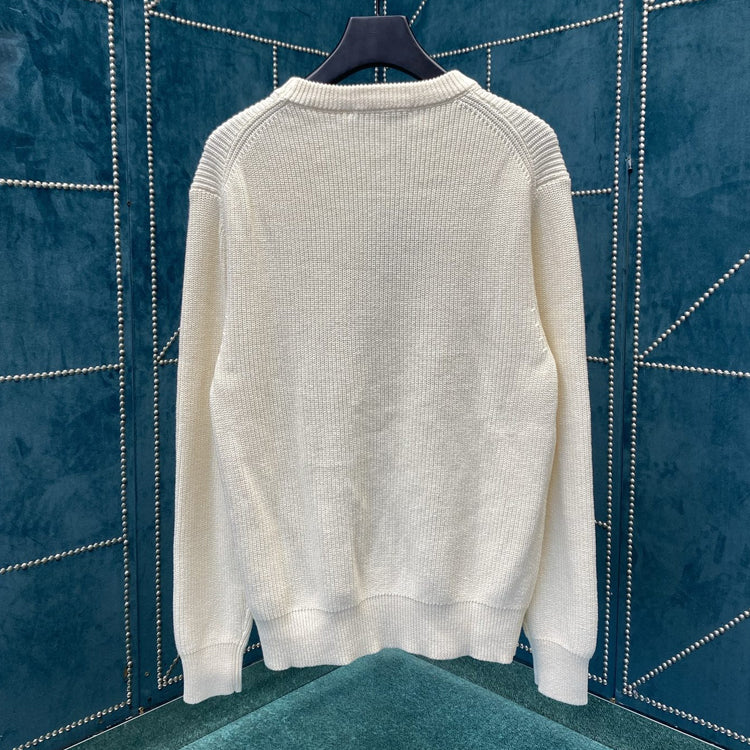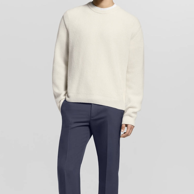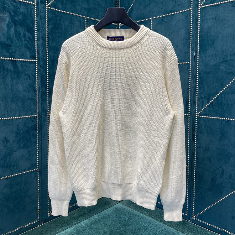This cashmere round neck sweater features ribbed knitting to create a rich texture, combining elegant style with a soft and comfortable feel. The LV logo embroidery is located at the left hem, and the leisurely brushstrokes can easily upgrade various styles.