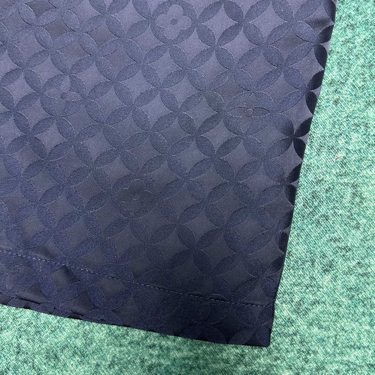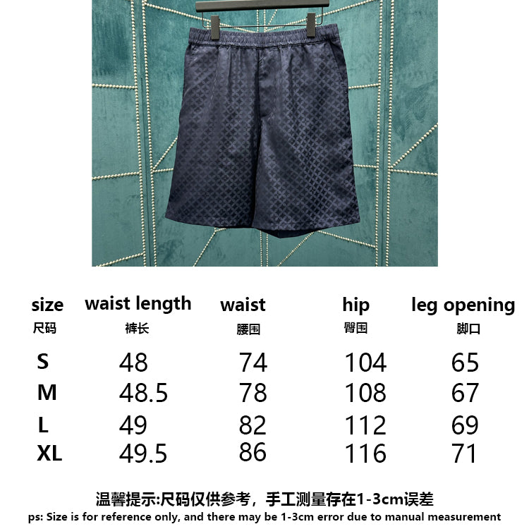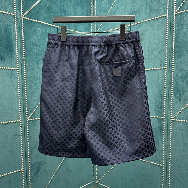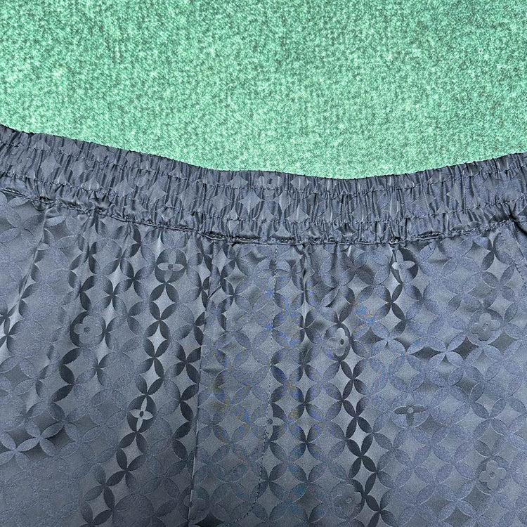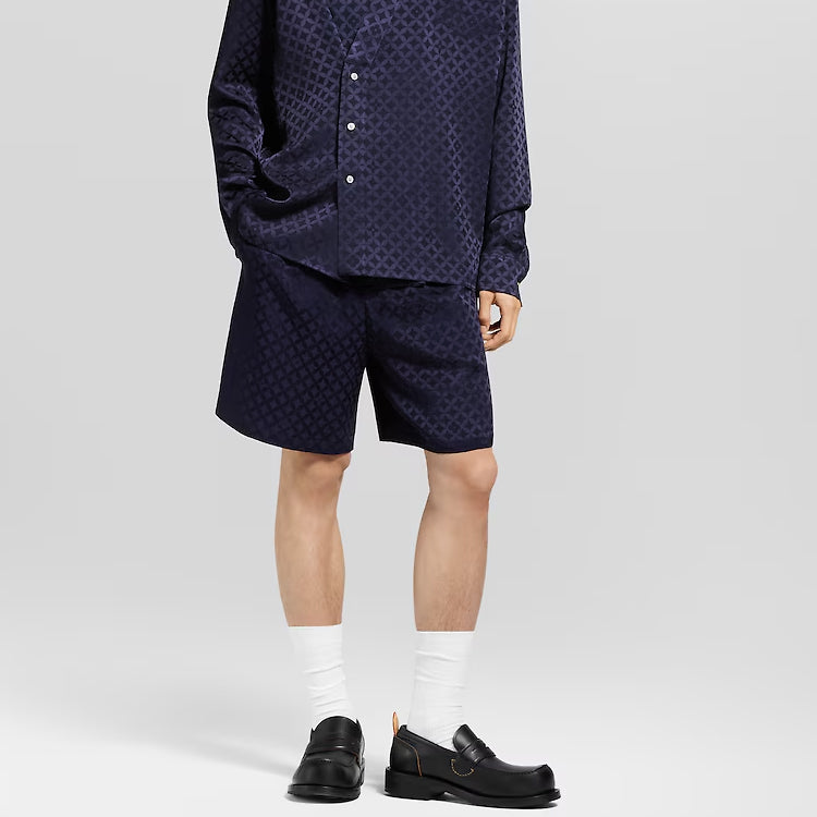 This pair of shorts continues the collaboration between Pharrell Williams and Nigo for the 2025 autumn/winter collection, featuring a Dandy Monogram pattern on glossy jacquard fabric and a comfortable experience with an elastic waist. The Marque L. Vuitton D é pos é e sticker is placed above the back pocket and can be paired with the same short sleeved shirt to create a leisurely day and night look.