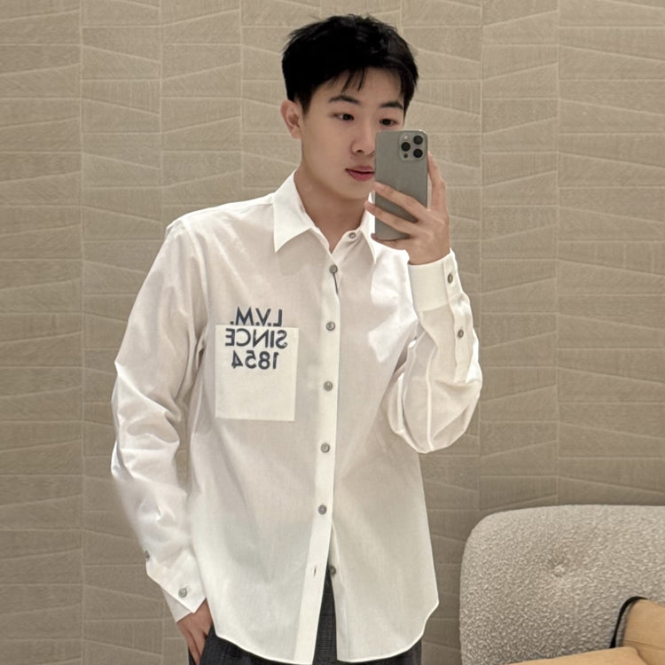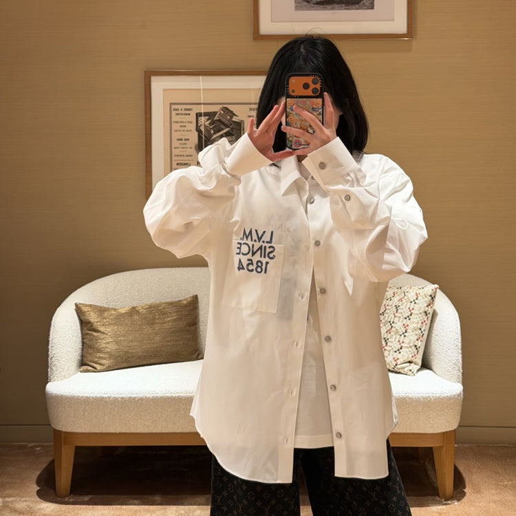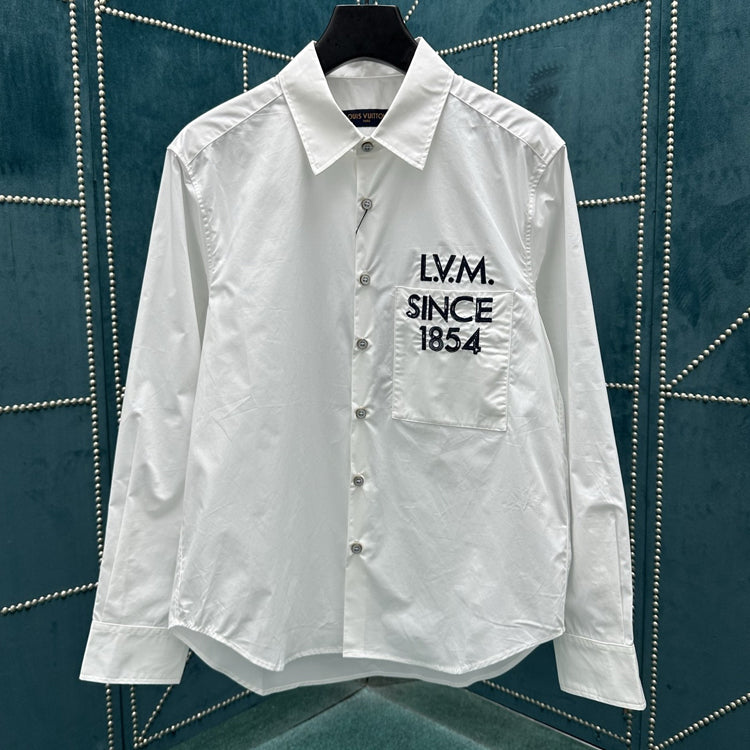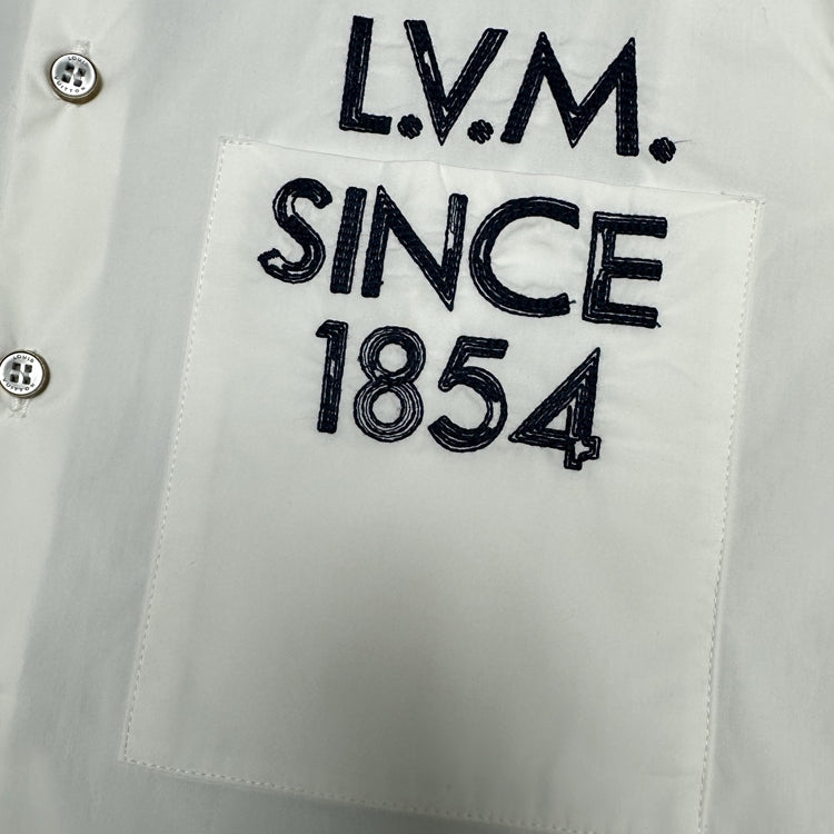 This crisp, well-tailored shirt is crafted from cotton poplin and adorned with the LV Legacy emblem from the 2026 Spring/Summer runway, adding a touch of refinement. Inspired by the history of Louis Vuitton's personalized luggage, it features a contrasting L.V.M. lettering print with a hand-drawn effect on the chest pocket. This versatile piece can be styled for both formal and casual occasions.