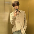 This shirt features a classic silhouette cut from soft corduroy, depicting the elegant autumn style with subtle colors. The full width LV Blason logo flows brilliantly, with pearl buttons adding a Dandy vibe, making it easy to navigate day and night occasions.