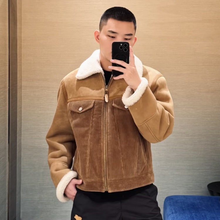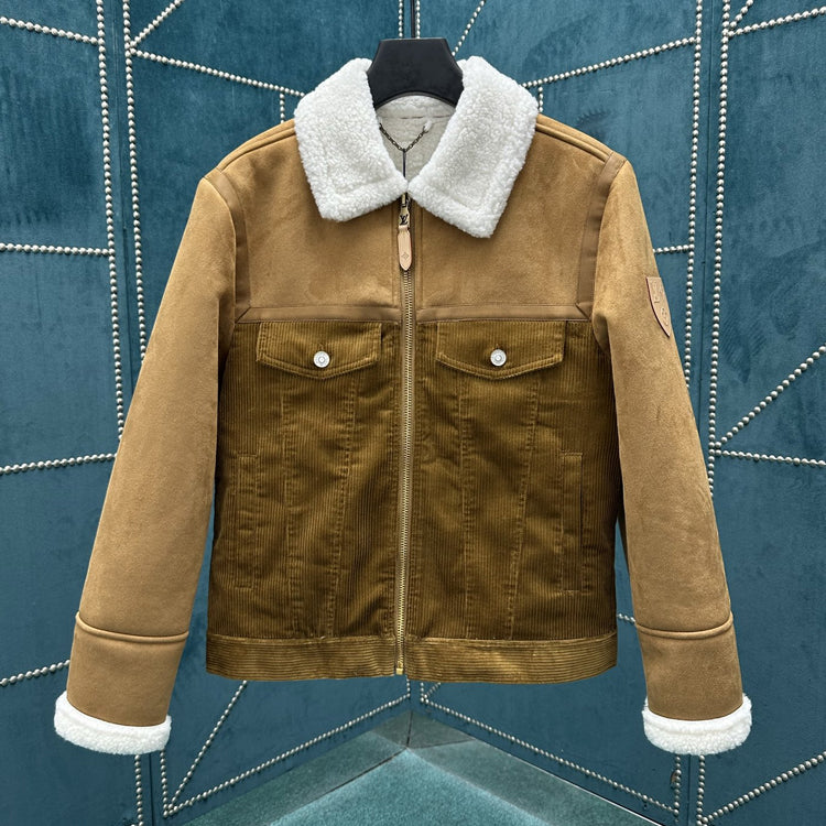 LV 25ss new men's SKI skiing series corduroy wool leather spliced truck jacket jacket jacket