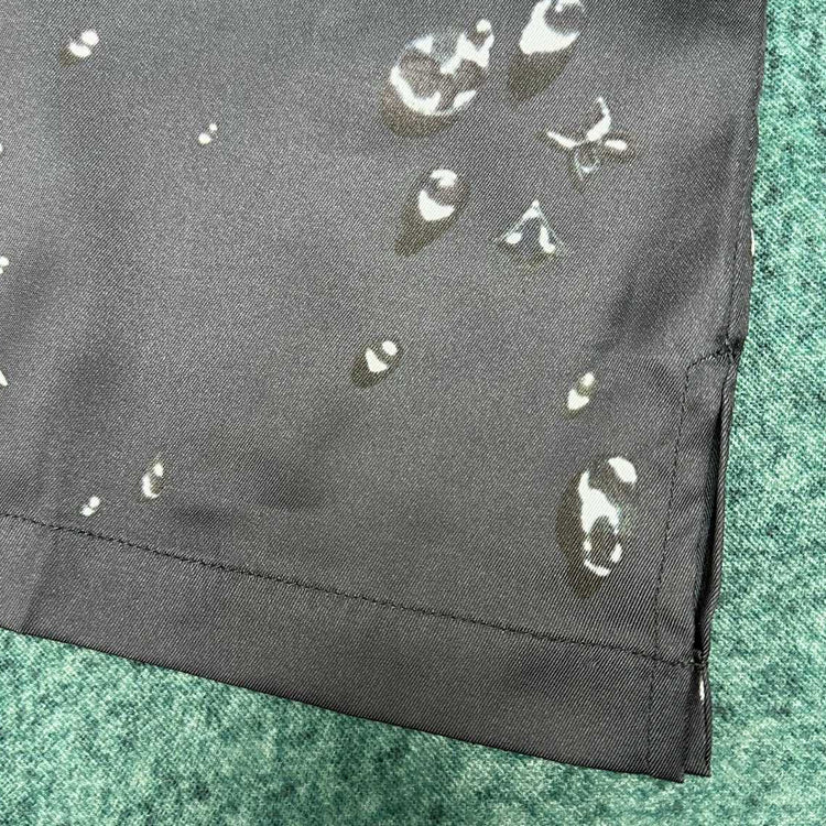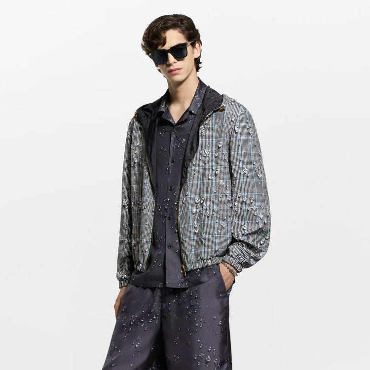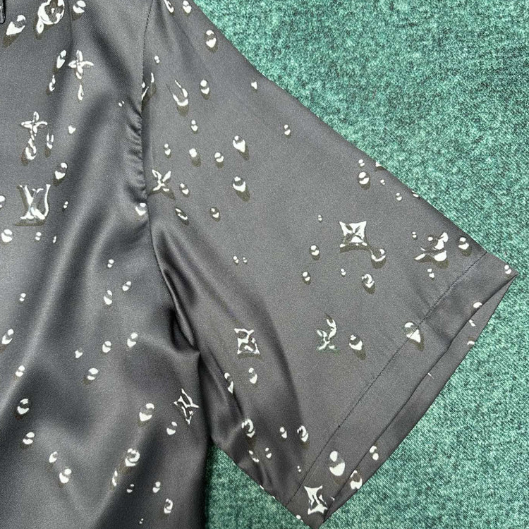 This dark shirt is made of vertical mulberry silk twill fabric and is embellished with Monogram Waterdrops print on the entire width. The classic logo is transformed into mistaking raindrops, echoing the theme of this season's British countryside. Pair with the same short sleeved shirt to create a trendy vacation look