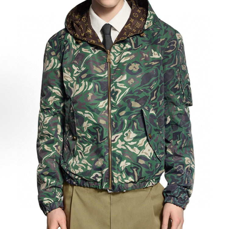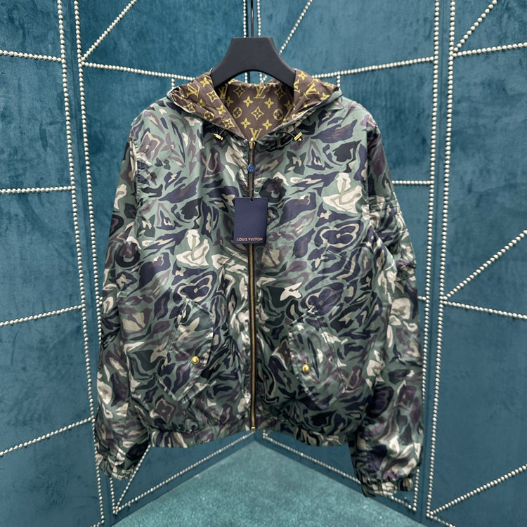LV 25ss New Nigo Co branded Double sided Hooded Zipper Jacket