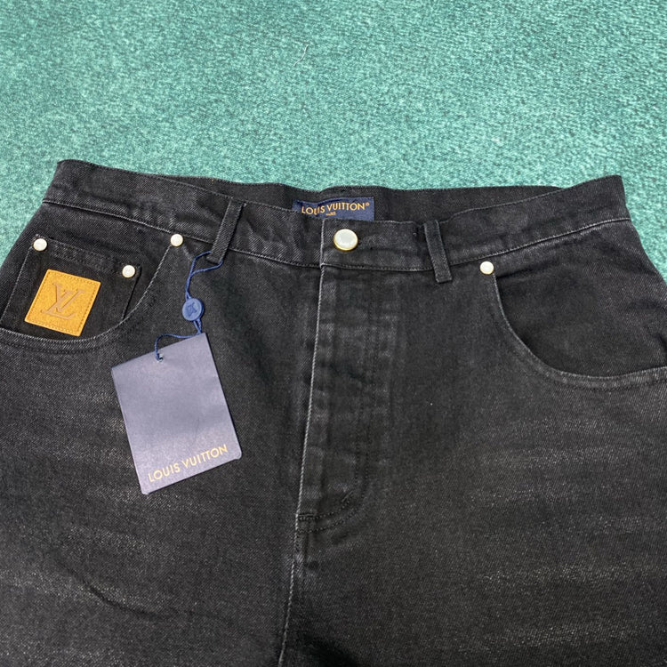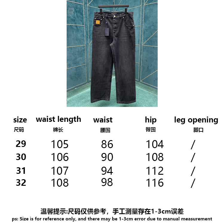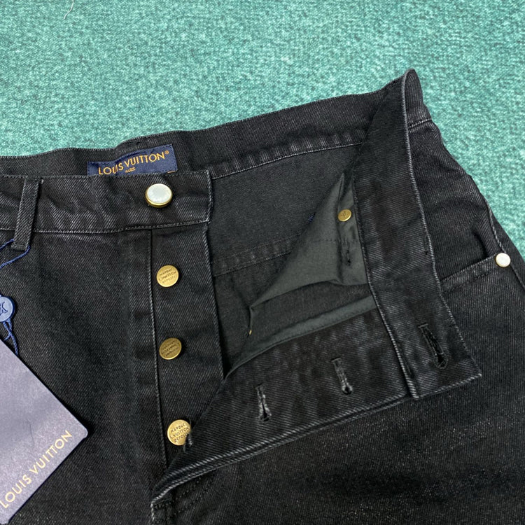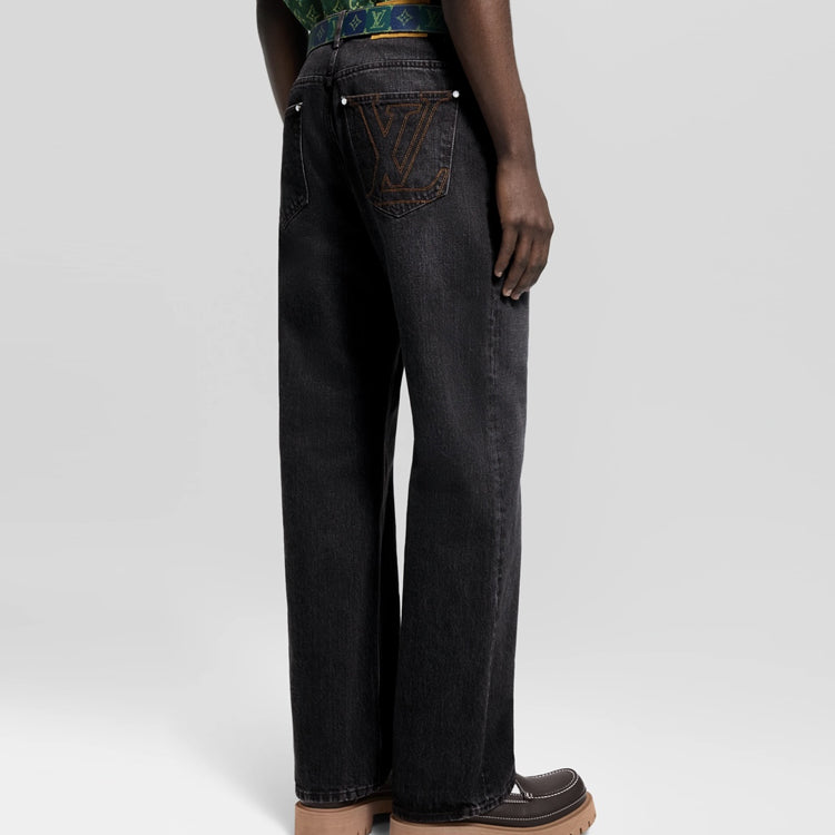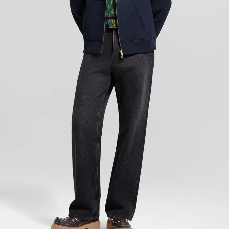 This pair of skateboard jeans is made of Japanese Seiko denim fabric, reinterpreting the classic design with exquisite craftsmanship. The back pocket is embroidered with LV letters using visible thread, and the ticket pocket and waist are embellished with suede leather identification stickers, making it easy to match various styles.