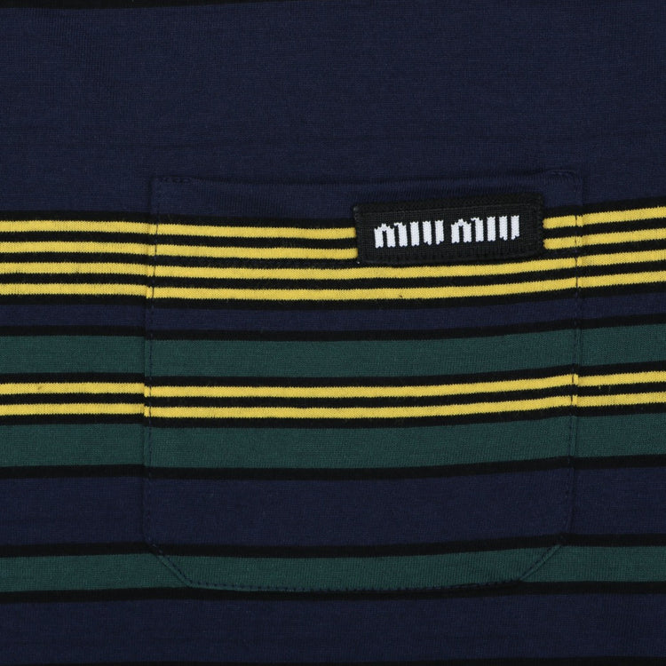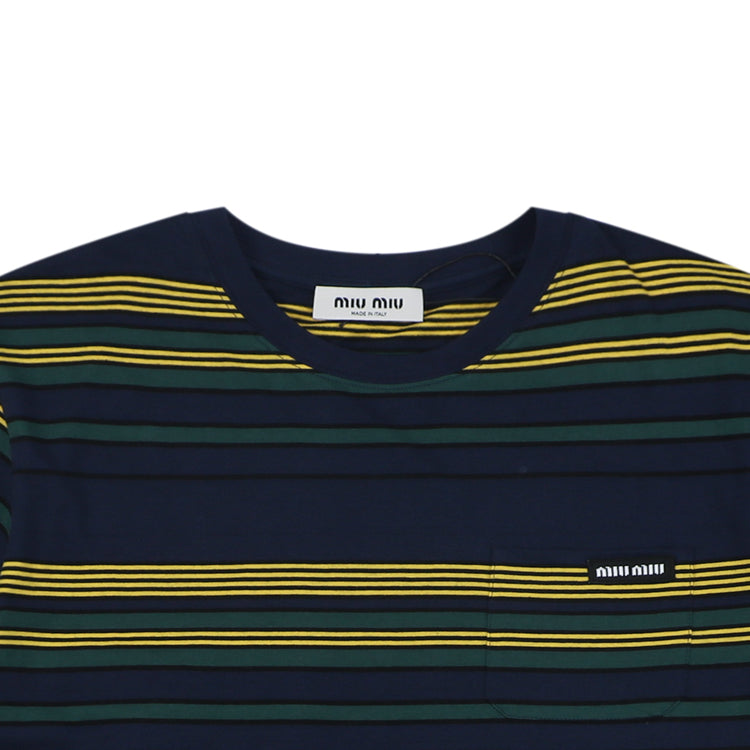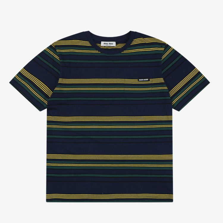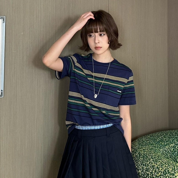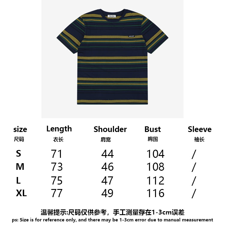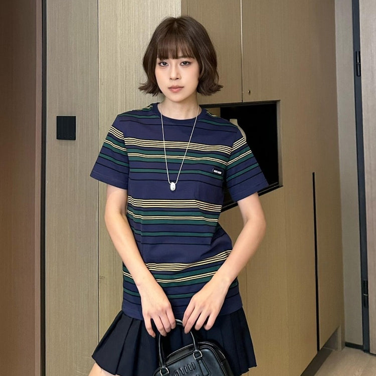 Miu Miu 25FW Autumn Yellow and Green Striped Short Sleeve