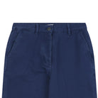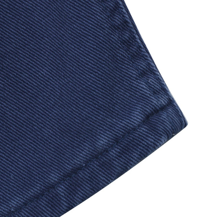 The fabric is made of 10-count twill blended material, with a lined inner composite knit base. The two fabrics are combined into a single layer, doubling the cost and requiring separate dyeing. This gray variant is unique, as there is no exact color match in the market. The button mold is divided into two sizes: one for the crotch and one for the waistband. The inner side seams use a hidden press process to prevent thread exposure. After finishing, the product achieves a perfect thigh effect