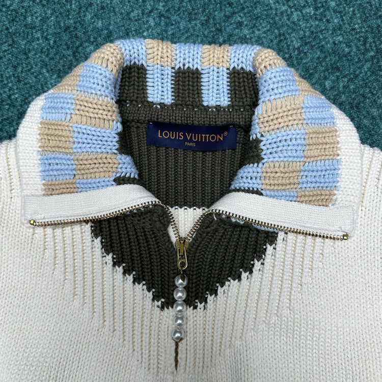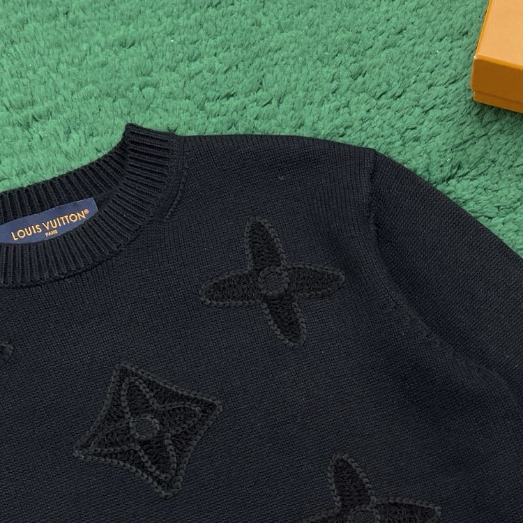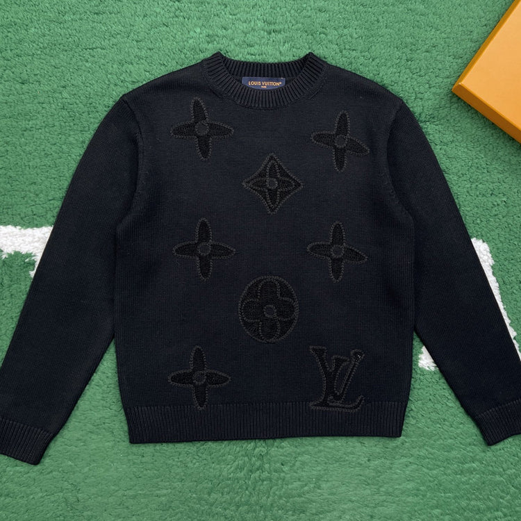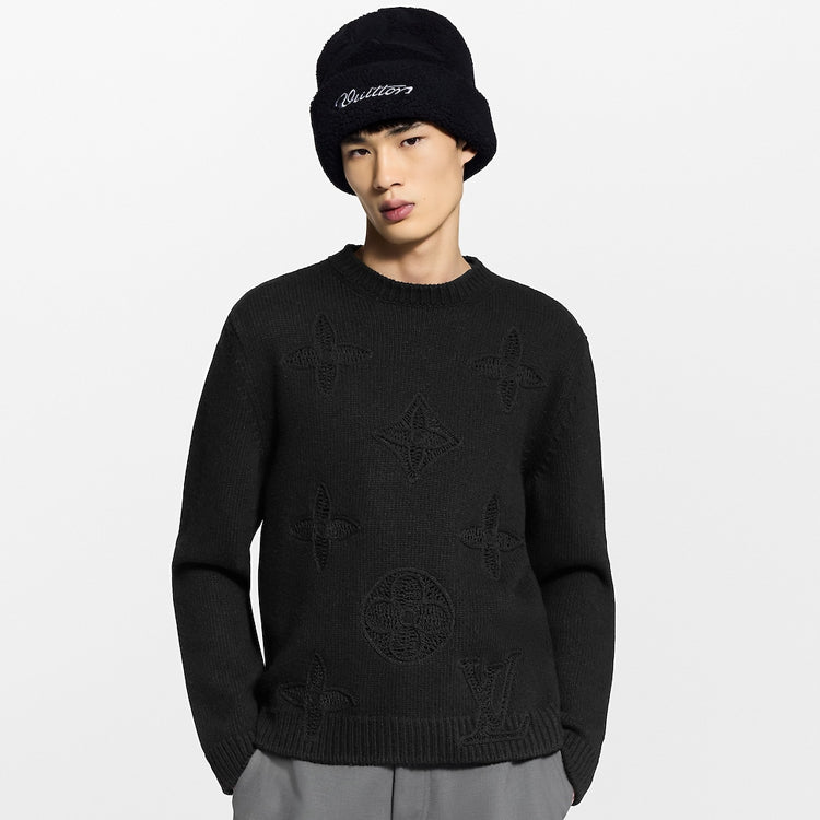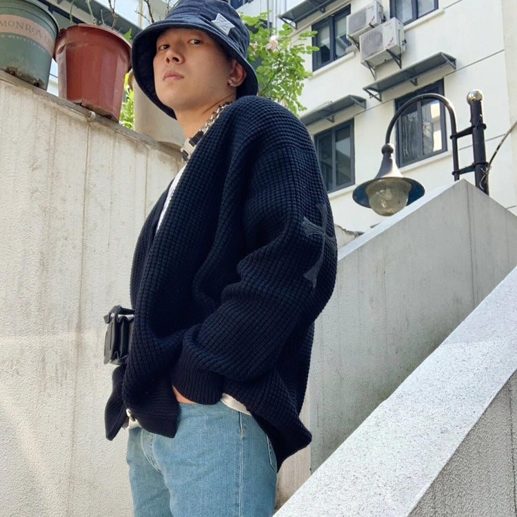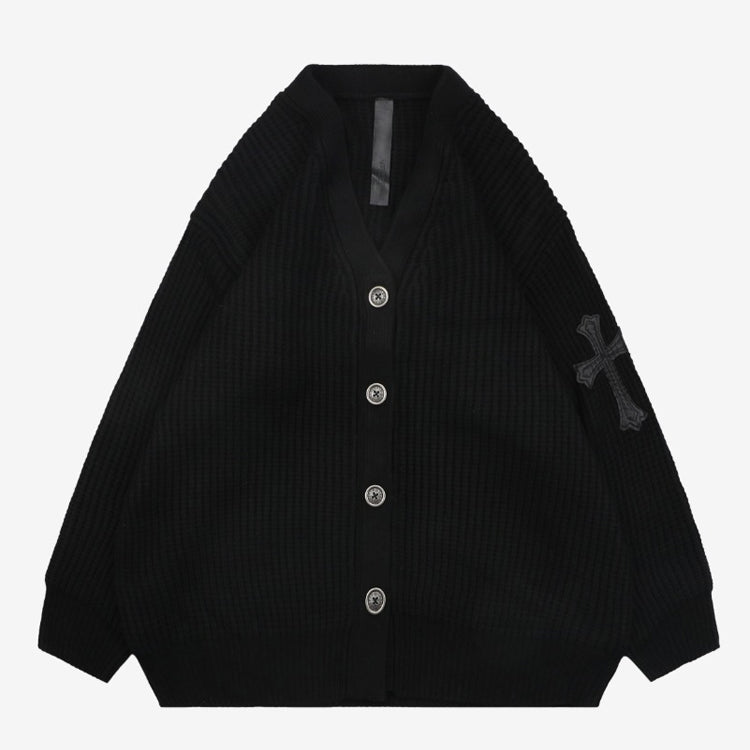 Chrome Hearts Arm Cross Leather Tag Waffle Knit Sweater