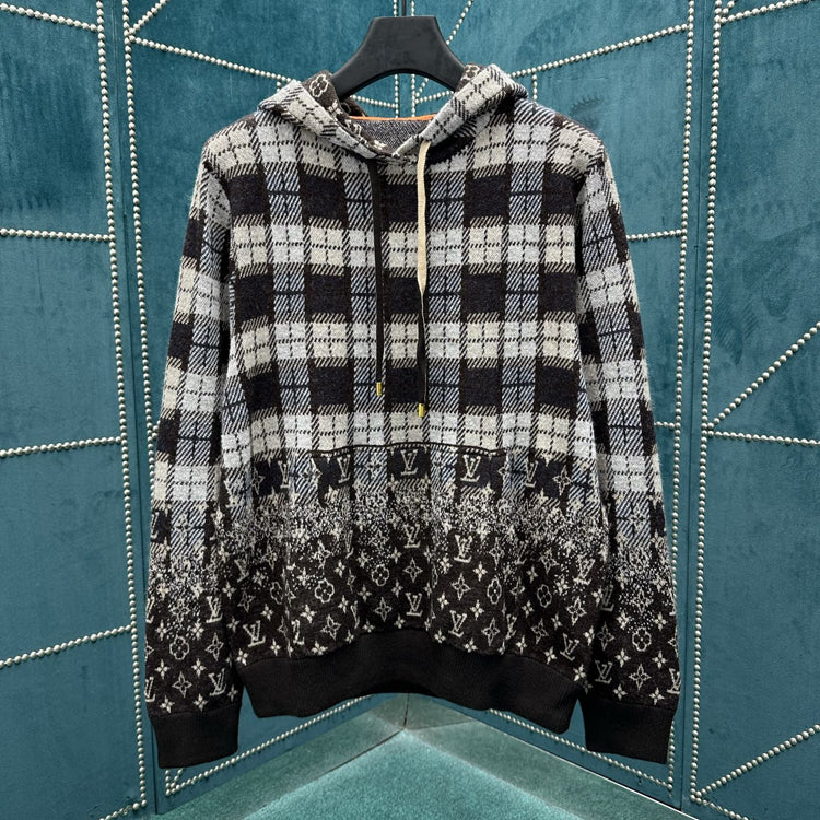 lv 25ss New MONOGRAM Faded Plaid Hoodie