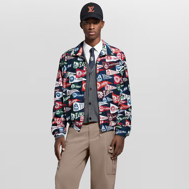 LV 25ss new long sleeved windproof full print stand up collar jacket