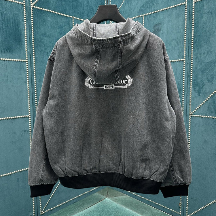 Dior 25ss new spring men's clothing collection hooded gray cotton twill fabric jacket jacket