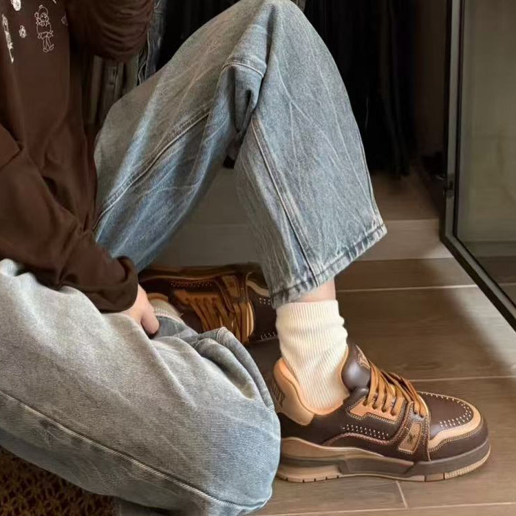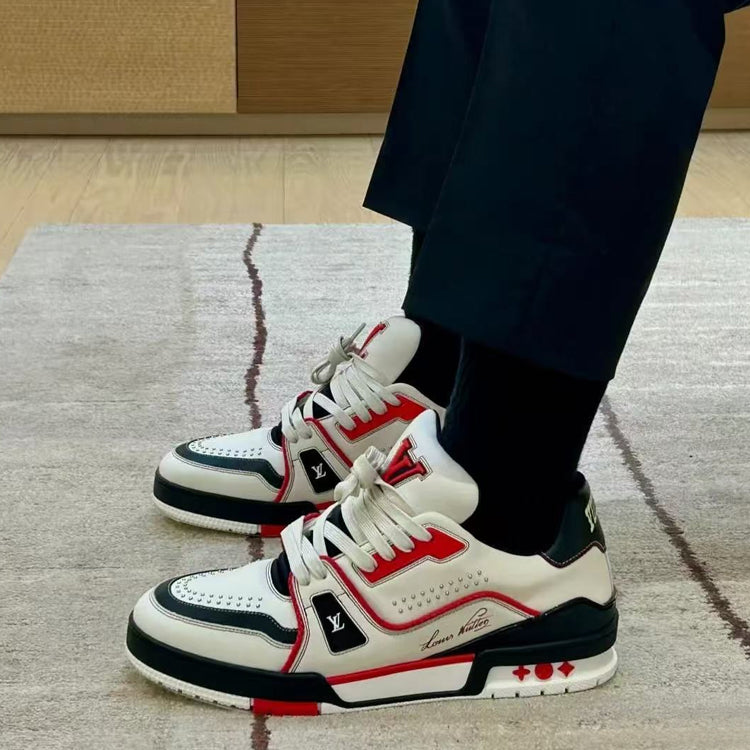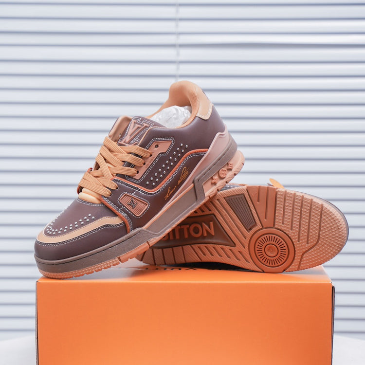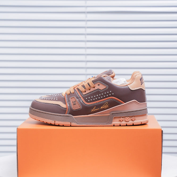 Sports Series Low-Top Vintage Versatile Casual Sports Culture Basketball Board Shoes "Virgil Abloh drew inspiration from vintage basketball shoes to create the highly favored LV Trainer sneakers. This shoe features a grainy cowhide leather embossed with the iconic Monogram pattern, which, together with the smooth cowhide leather, creates a new classic design."