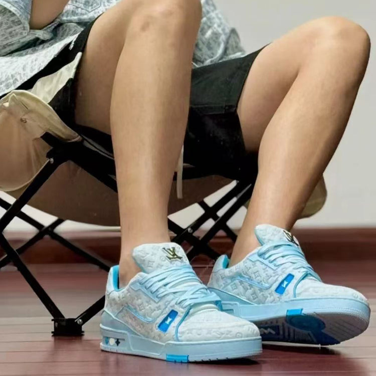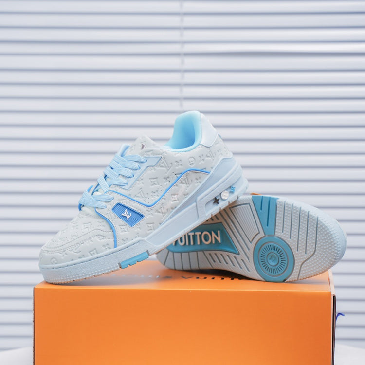 Sports series low-top vintage versatile casual sports culture basketball sneakers "Virgil Abloh drew inspiration from vintage basketball shoes to create the highly favored LV Trainer sneakers. This shoe features a grainy cowhide leather embossed with the iconic Monogram pattern, which, together with the smooth cowhide leather, creates a new classic design.