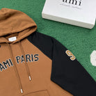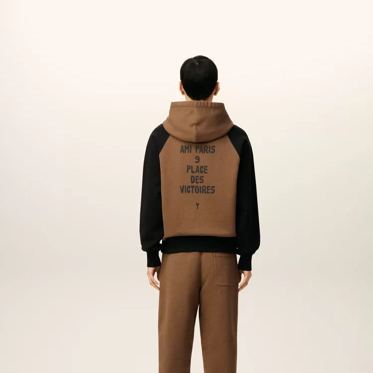 AMI men's letter-printed heavyweight cotton terry fleece with raglan sleeves and hoodie pullover