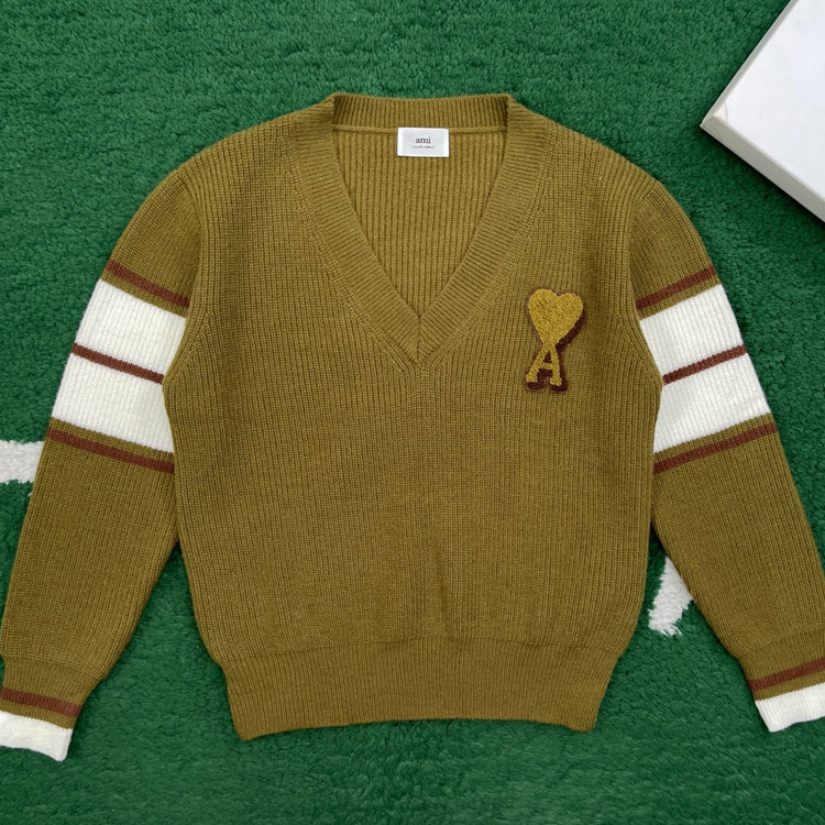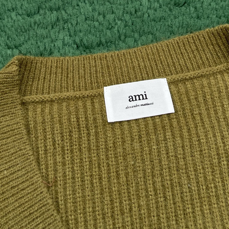 Ami towel embroidered ADC wool ribbed V-neck sweater