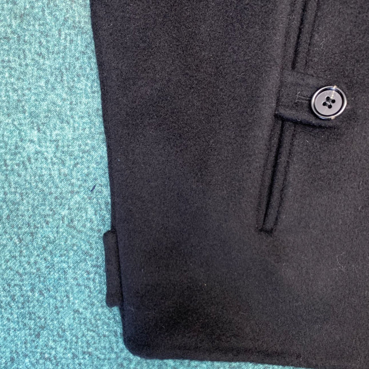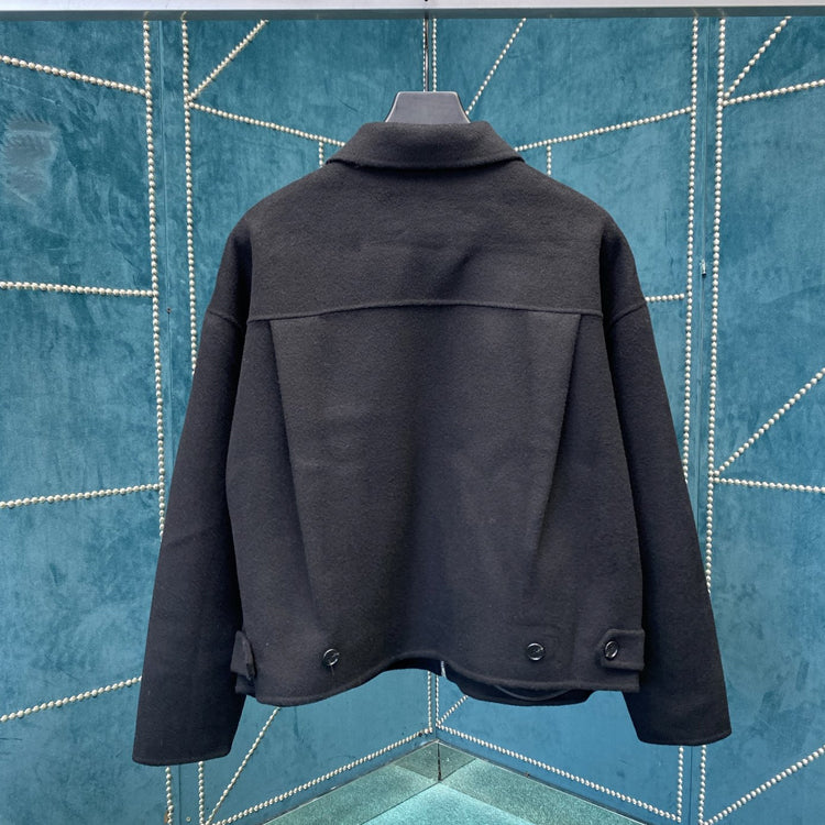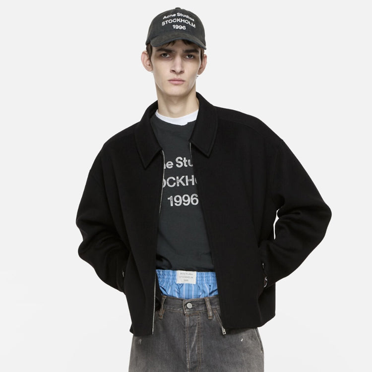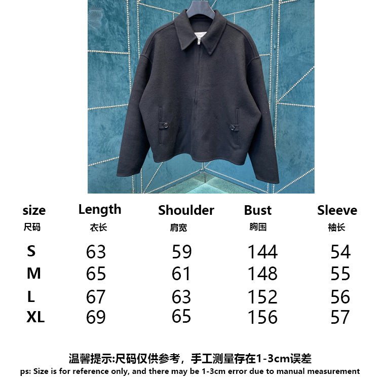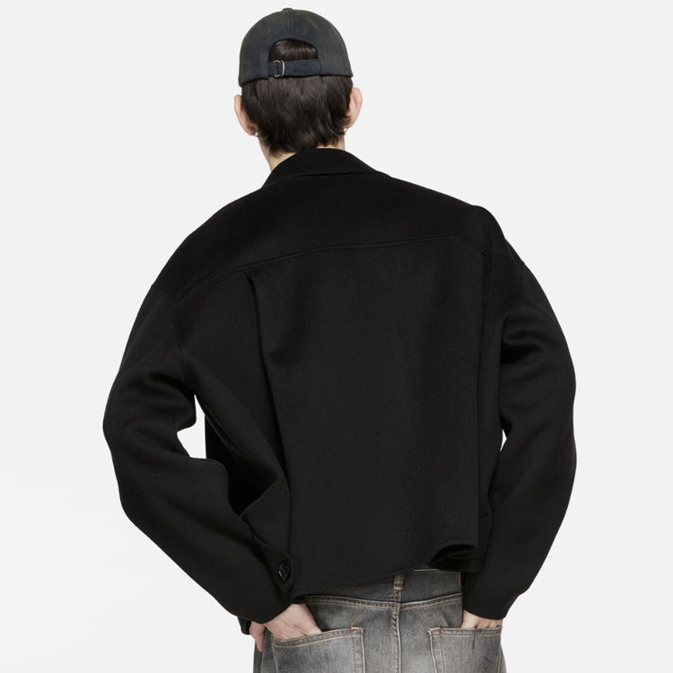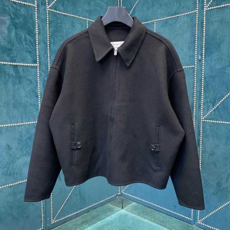 This jacket is made of Kaismi blend fabric, with a surface that has been sanded to provide a more premium soft touch. The design features side pockets and an adjustable waistband buckle, both of which are closed with buttons. Tailored to a loose fit, with a length up to the hips.