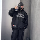 Tech cotton blended poplin fabric with high neck, 2 zippers on the front, slanted pockets, elastic cuffs and waist, embroidered with 3B Sports Icon artwork on the front, sleeves, and back