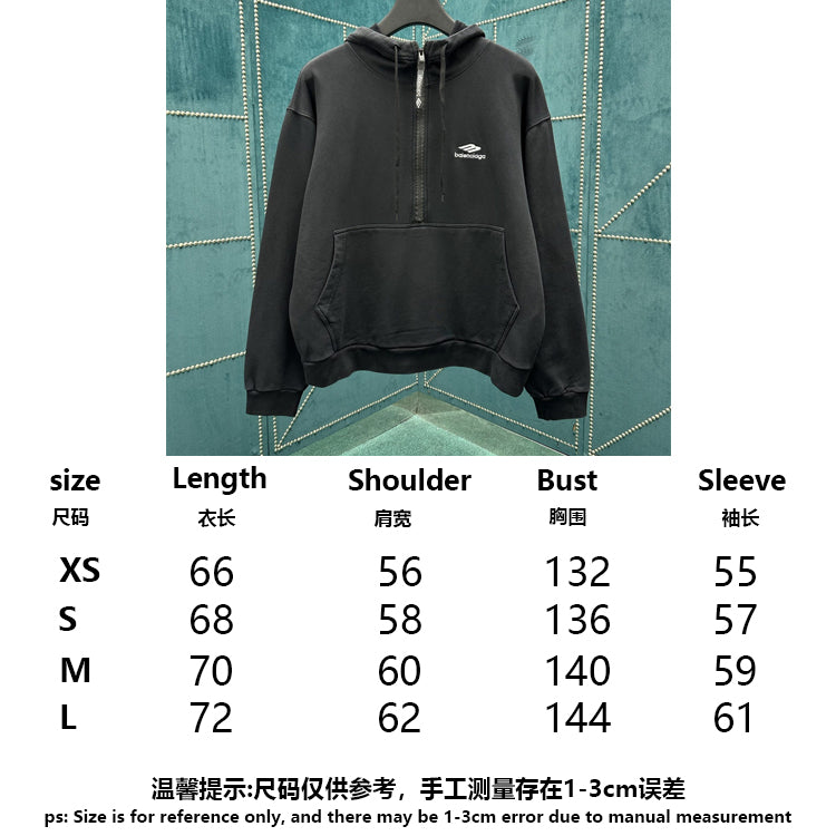Balenciaga 25ss new 3B SPORTS ICON HOODIE half zip hooded sweatshirt