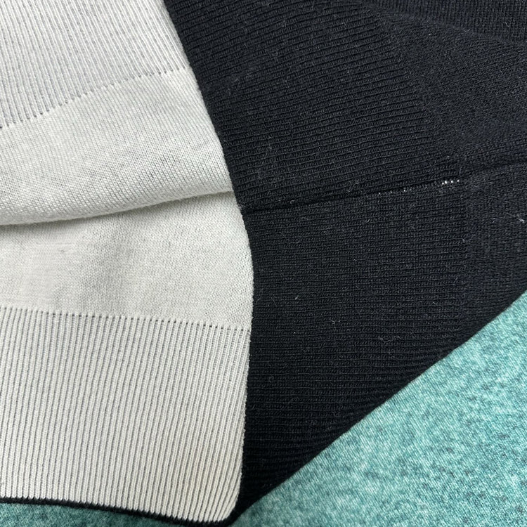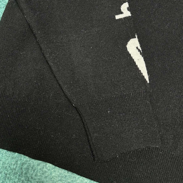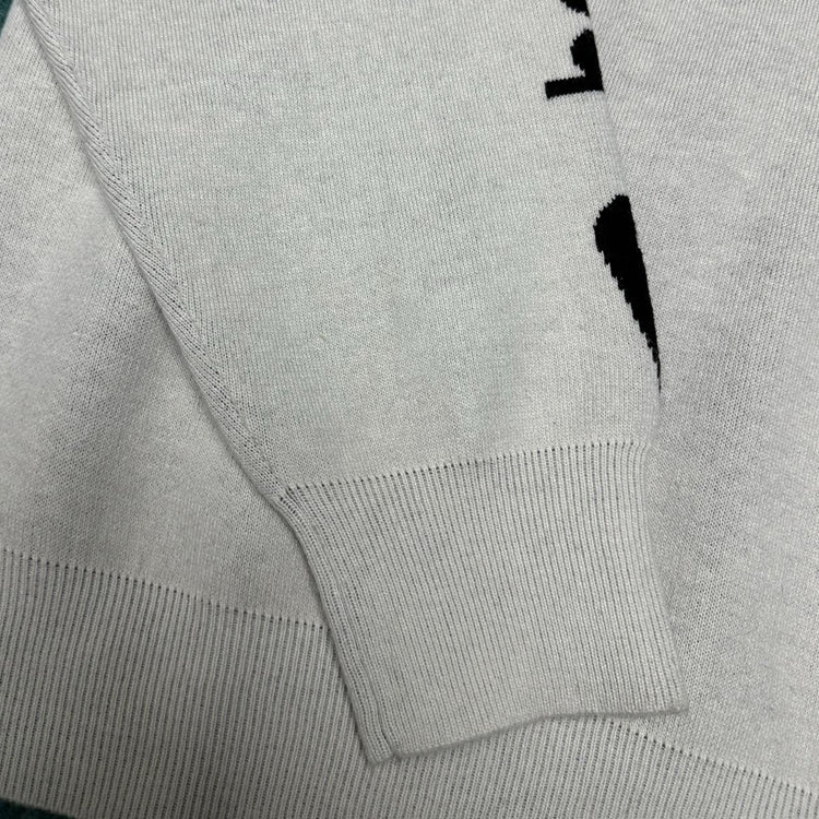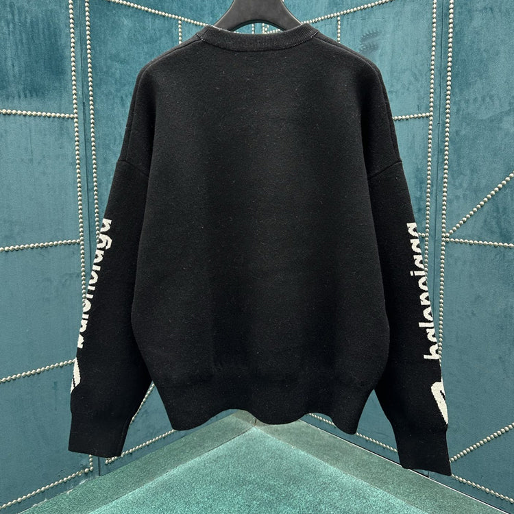 Round neck top with double-sided wool blend knit fabric, embroidered with 3B sports icon artwork on the front, and jacquard details on the sleeves
