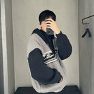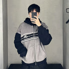 Fluffy Hoodie Men's Gray, Black, and White Fuzzy Sporty Cotton Blend Knit Zip-Up Pullover Hoodie Puffy Cotton Blend Knit Fabric No Drawstring Hood Drop Shoulder Front Two Pockets Gathered Cuff and Hem Front Embellished with 3B Sports Artwork Embroidery