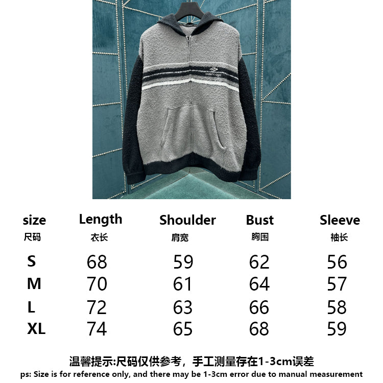 Balenciaga 25ss New Fluffy Hoodie Zippered Pullover Sweatshirt