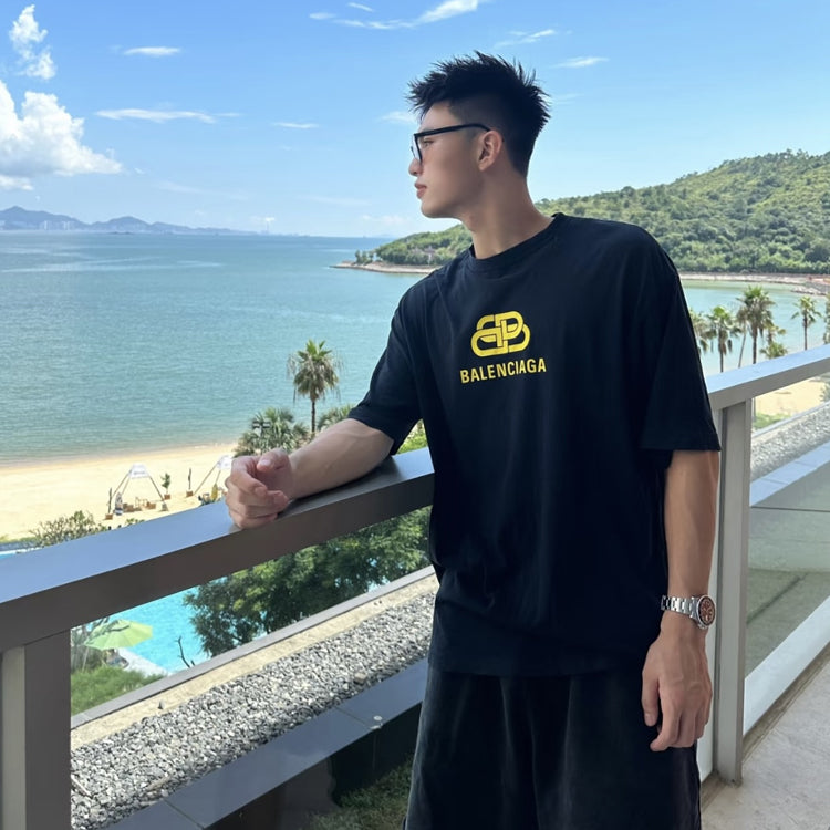 Balenciaga 25ss new lock logo chest printed letter short sleeved T-shirt