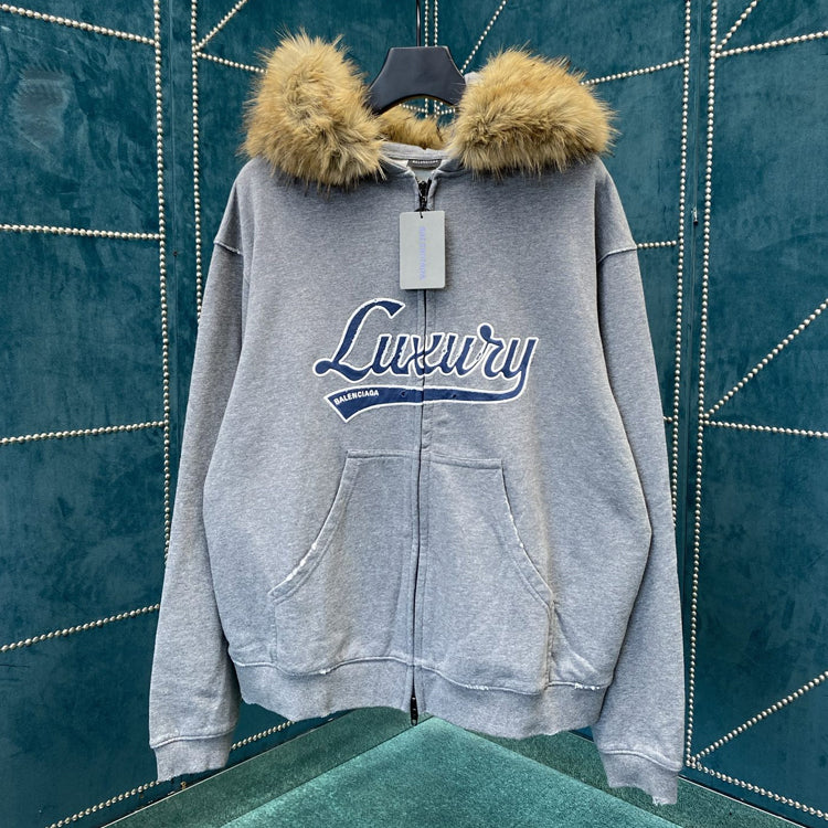 Balenciaga 25ss new LUXURE SCRIPT silhouette zipper hooded sweatshirt
