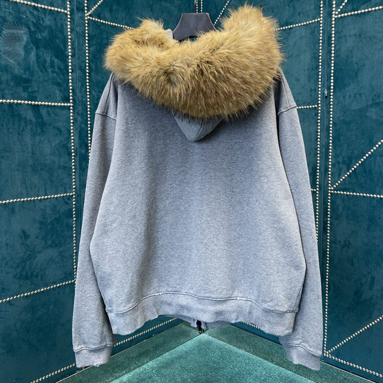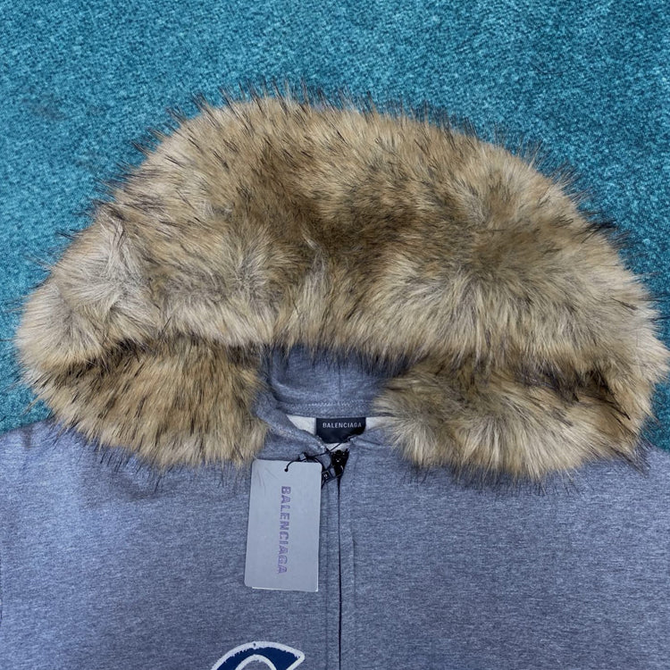 Luxury Script dark grey and blue silhouette zipper hooded sweatshirt, unveiled in Balenciaga 2025 winter collection