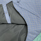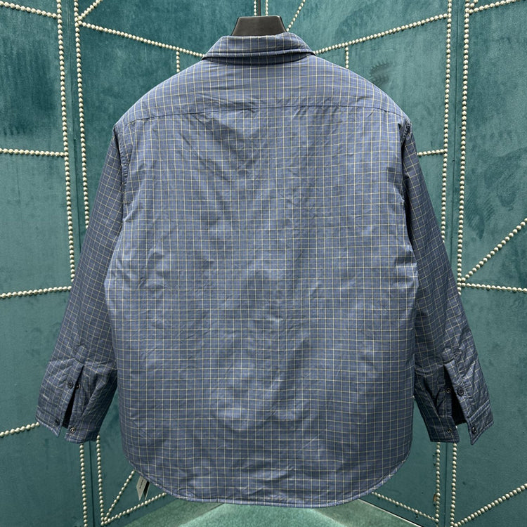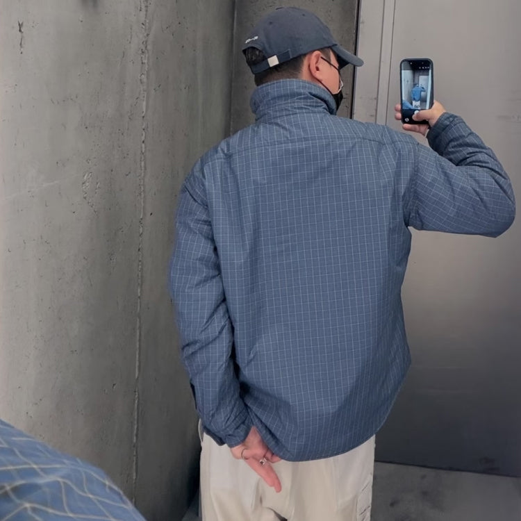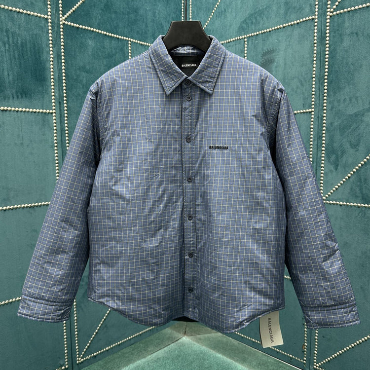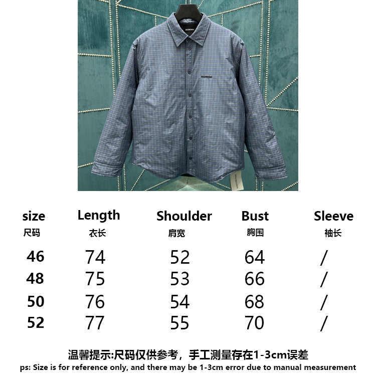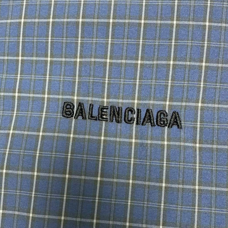 The blue plaid jacket has a firm and crisp silhouette, with BALNECIAGA embroidery on the chest and a soft and firm silhouette