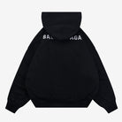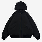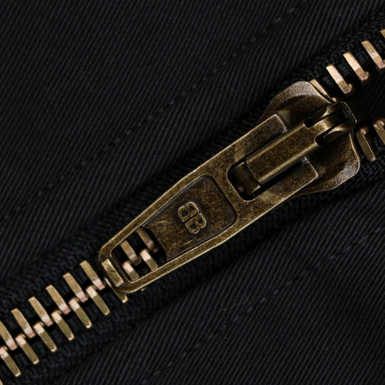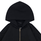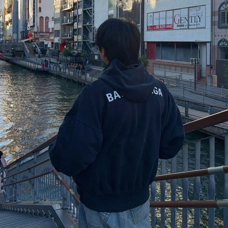 The outer layer is made of high-density cotton twill fabric, which is first sandwashed and horse chestnut stir fried to achieve overall gray aging, and then locally ground with cat whiskers and sandblasted to simulate the wear marks of natural wear. The hood, shoulders, and side panels are spliced with 480G combed looped fabric, which is super thick. The fabric is pre treated with sulfurized black stir fried for aging, and then spliced with the outer twill fabric to ensure that the fading degree and texture of the two fabrics are highly consistent