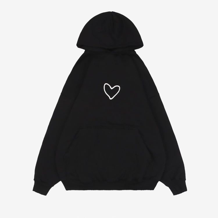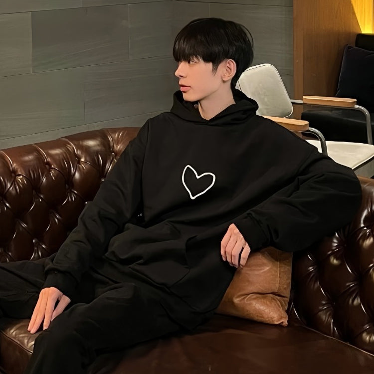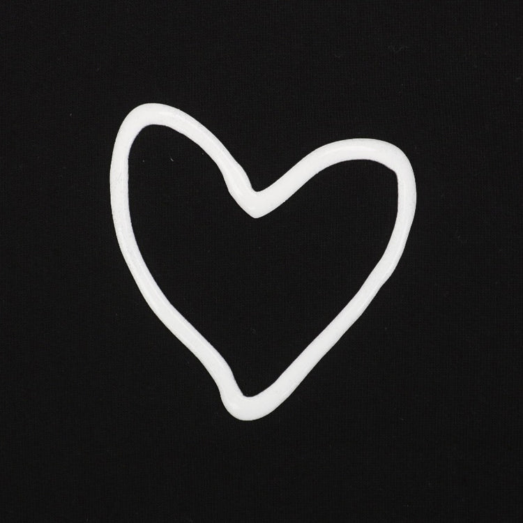 Adopting an exclusive dual color color weaving process for pattern fixing and dyeing, the outer layer of the fabric presents a purple red black gray color, while the inner layer is a cool blue gray color, forming a sharp contrast between warmth and coldness. The fabric is 460 grams of 32 count high-end combed cotton looped fabric, soft, comfortable, and has high color fastness. The heart-shaped pattern on the chest is made of imported high elasticity jelly silicone for pattern opening and injection molding, with 3D three-dimensional fullness and good rebound. The collar, cuffs and other parts are manually ground and processed, and the whole is washed with water to create an old process, presenting a natural retro destructive effect. It is supplemented by customized three standard accessories for pattern fixing